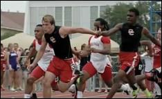The Star Telegram reports Derrick Hayes, a junior at Columbus High School in Columbus, Texas, was anchoring the 400-meter relay team and was several yards ahead of his competitors when he lifted a finger toward the sky in what was taken as a religious gesture.